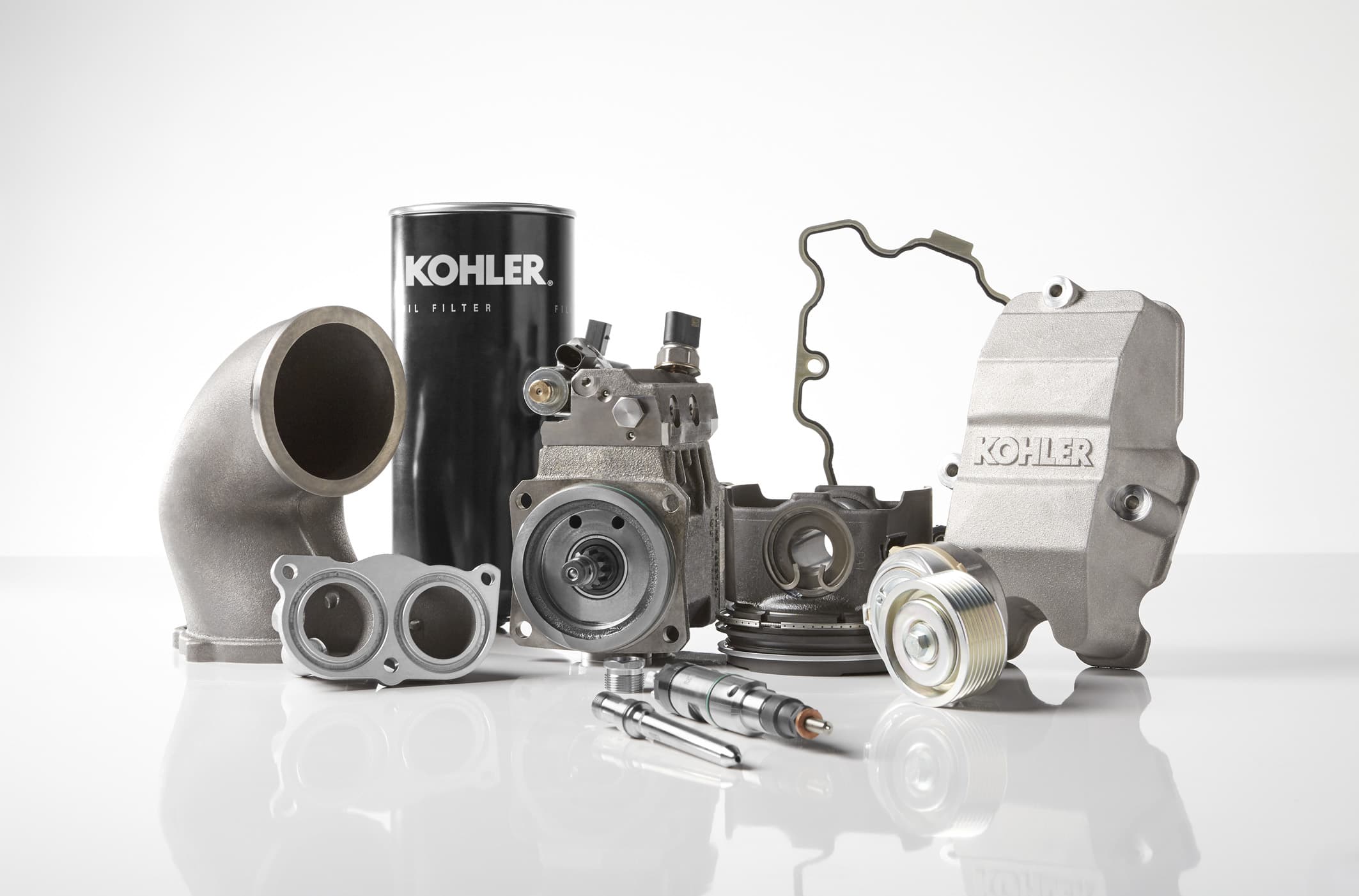 Des turbocompresseurs aux filtres à huile, nous garantissons que chaque pièce qui intègre nos groupes électrogènes KD Series™ répondent aux normes de performance et de durabilité les plus strictes. Pour maintenir un fonctionnement optimal de votre groupe électrogène, et préserver votre garantie, veillez à toujours utiliser des pièces d'origine KOHLER.